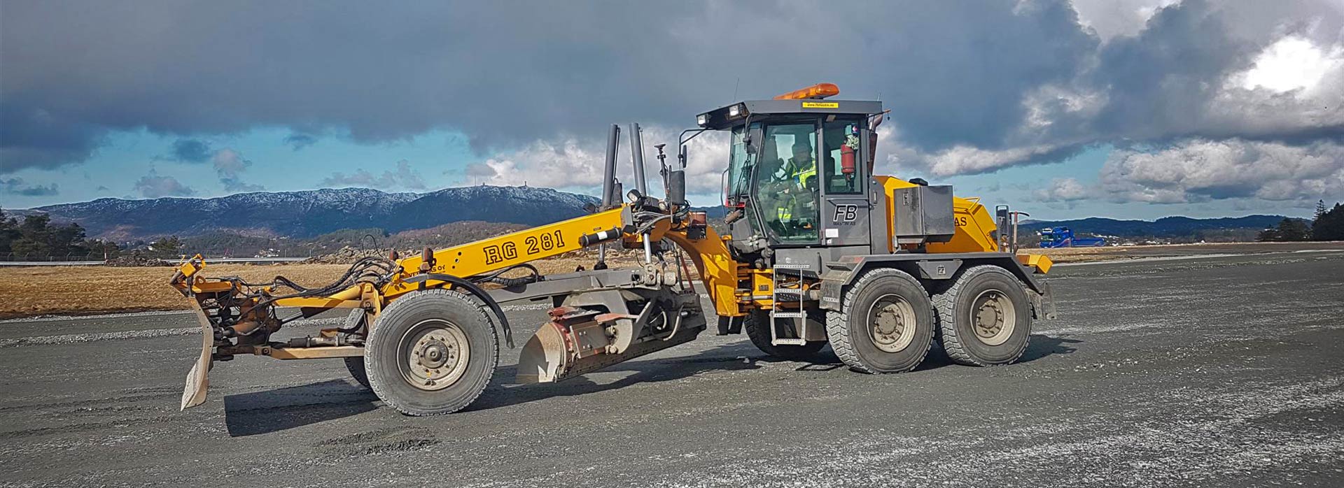 Utlegging av grus og jord med utlegger med veihøvel på idrettsbaner