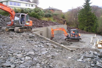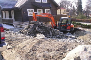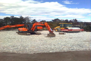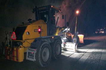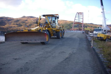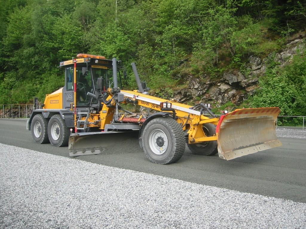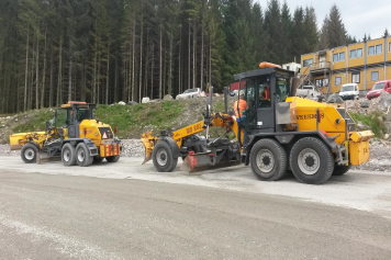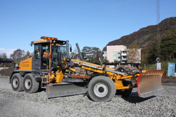 Utlegging av grus og jord med utlegger med veihøvel på idrettsbaner